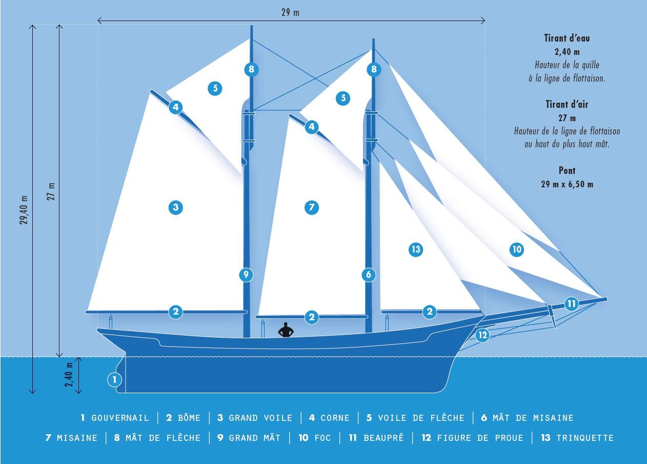 Le Miguel Caldentey est donc une goélette franche à deux mâts.