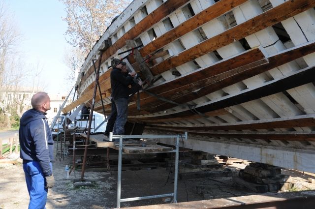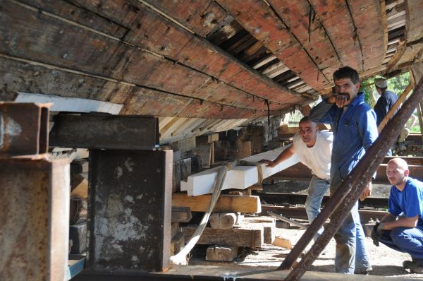La première phase de travaux de la goélette a consisté à réhabiliter la coque afn de répondre aux critères à la future exploitation du navire. Afin de retrouver la cohésion du système constructif de la coque, la charpente transversale a été restaurée préservant certaines pièces et remplaçant systématiquement toutes parties défectueuses comme l’intégralité de la charpente axiale et du bordage. Une fois la coque terminée, il a été possible d'engager la reconstruction du pont et la préparation de l'intérieur du navire.