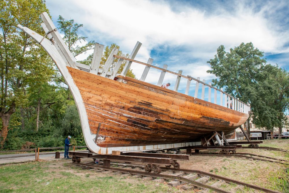 La construction du roof de la goélette a débuté au mois de septembre 2019 par l'équipe de charpentiers de l'Atelier des Barques du Conseil Départemental des Pyrénées Orientales.